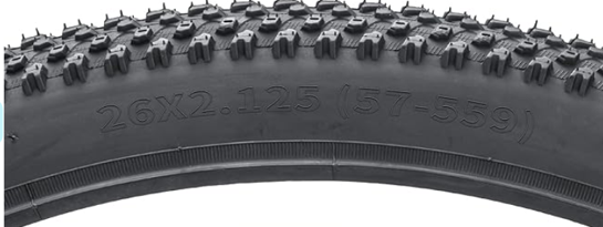 - Parameters - 26x2.125 (57-559) Mountain Bike Tire , recommended inflation at 35-50 PSI.