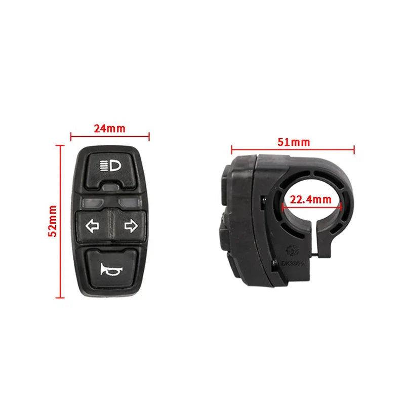 DK336 Electric Bike Scooter Front Light,Horn Signal and turn signal Switch 36V-48V for Ebike Electric Scooter Motorcycle Button
